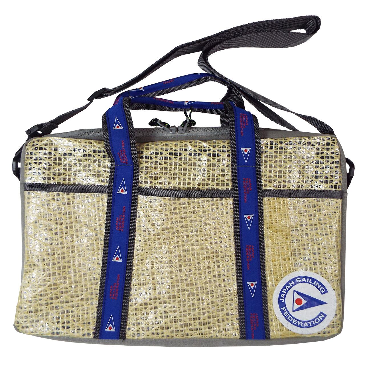 ゴールド系カラーのアラミド系(タワロン/ケブラー)素材のレーシングセイルを再利用したドキュメントバッグです。